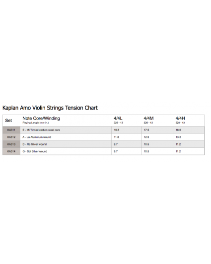 Por un lado, Kaplan Amo proporciona calor, riqueza armónica y la flexibilidad típica de los instrumentos más brillantes. Por otro lado, Kaplan Vivo proporciona brillo, claridad y una sensación sólida para instrumentos más oscuros. Ambos conjuntos se asientan rápidamente, exhibiendo una rica paleta de colores de tonos y una excelente respuesta del arco.