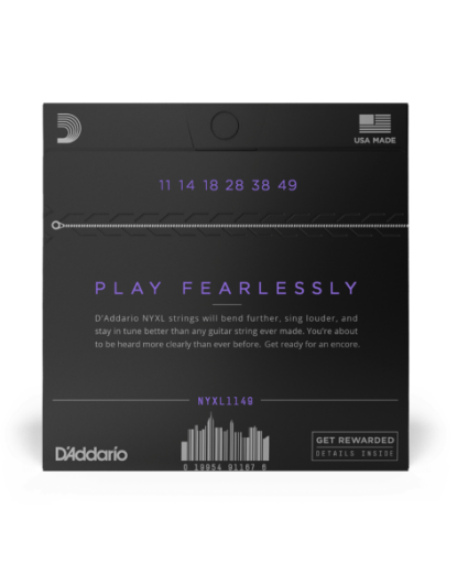 Cuerdas D'Addario NYXL1149. El NYXL1149 está diseñado para calibres más gruesos para guitarristas que prefieren una flexibilidad moderada y un tono lleno y grueso. Las cuerdas para guitarra D’Addario NYXL se estirarán más, tendrán más volumen y mantendrán la afinación mejor que cualquier otra cuerda que usted haya tocado antes. Ideado, perfeccionado y fabricado por D’Addario en Nueva York, este núcleo de acero al carbono y aleación de acero liso de nuevo desarrollo y resistente a las roturas ofrecen todo un nuevo nivel de libertad, confianza y potencia. Las NYXL ofrecen más resistencia y hasta un 131 % más de estabilidad de afinación al utilizar un proceso de estirado de cable totalmente reinventado combinado con un revolucionario proceso de «torsión de fusión» para las cuerdas de acero liso. Los enrollados de cuerda chapada en níquel reformulados tienen mayores propiedades magnéticas que les confieren una mayor potencia de salida y mejor respuesta a las frecuencias medias para mayor presencia y ataque