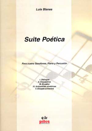 Libro o partitura "Suite Poética" instrumentado para 4Sax-Pno-Perc, de la editorial PILES EDITORIAL DE MUSICA, S.A..