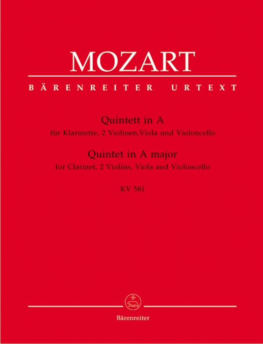 Libro o partitura "Quintett in A Major KV 581/ Partes" instrumentado para Cl-2Vl-Vla-Vlc, de la editorial BARENREITER VERLAG.