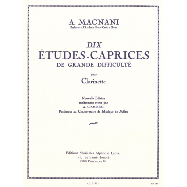 Libro o partitura "Dix Études-Caprice de Grande Difficulté" instrumentado para Didáctica, de la editorial ALPHONSE LEDUC EDITIONS MUSICALES.