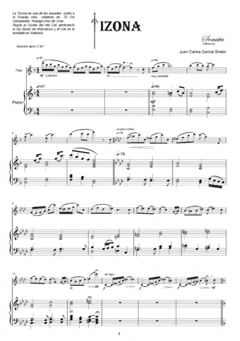 Libro o partitura "Tizona" instrumentado para Fl-Pno, de la editorial DASI-FLAUTAS.