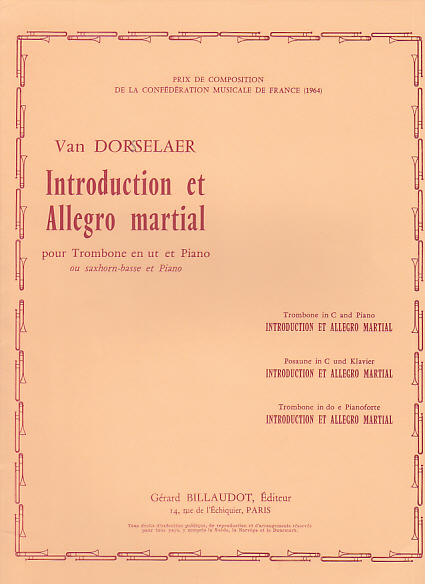 Libro o partitura "Introduction et Allegro Martial" instrumentado para Trb-Pno, de la editorial BILLAUDOT.