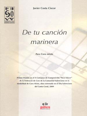 Libro o partitura "De tu Canción Marinera" instrumentado para Coro, de la editorial PILES EDITORIAL DE MUSICA, S.A..