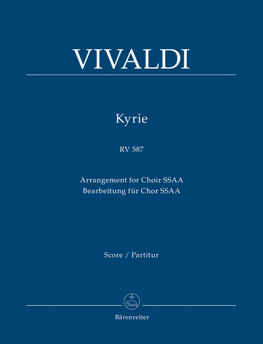 El "Kyrie" RV 587 (BA 8954) para dos coros y dos conjuntos de cuerdas, según lo dispuesto aquí para el coro femenino, muestra su propio encanto. Se puede realizar junto con Gloria como un tipo de masa corta.