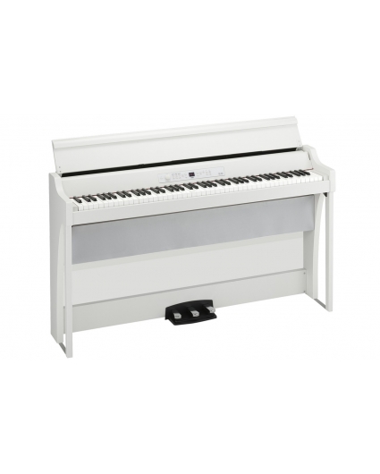 PIANO DIGITAL Nueva versión con panel posterior. El impresionantemente detallado sonido y el tacto dinámico del G1 provee al pianista de cualquier expresión musical posible. Basándose en décadas de innovadora tecnología de sonido KORG, creadores del multi-premiado KRONOS, y en un teclado diseñado con la máxima precisión para responder perfectamente tanto a un delicado pianissimo como a un potente fortissimo, KORG ha creado un piano digital único. La tecnología del G1 es tan avanzada que incluso se puede ver: el atractivo mueble del G1 es el resultado de la exclusiva experiencia de KORG en el diseño de instrumentos musicales y equipos de audio. Finalmente, no existe un compromiso entre un sonido superior y un diseño impecable. Crear una experiencia de sonido inmersiva a partir de un piano digital tan compacto y estilizado como el G1 es un logro realmente destacado. Al probarlo, tocarlo y oírlo, el KORG G1 cambiará su percepción de los pianos digitales para siempre.<br/><br/>En el corazón del KORG G1 residen 3 pianos de concierto famosos a nivel mundial, cada uno con su carácter único. Ningún otro fabricante puede desarrollar un piano que cubra las necesidades de cada pianista, así que KORG ha seleccionado tres renombrados instrumentos fabricados en Alemania, Austria y Japón. Ahora podrá experimentar su propio hogar el sonido de tres pianos de cola completamente diferentes, y seleccionar el que usted prefiera para cada pieza musical.<br/><br/>- Teclado RH3<br/>- Cinco niveles de respuesta al tacto<br/>- 120 voces de polifonía<br/>- 29 sonidos + 3 sonidos de bajo<br/>- Efectos Brillo, Reverb y Chorus (3 niveles cada uno)<br/>- Grabador de 2 pistas (máximo de 45.000 notas)<br/>- 50 canciones demo<br/>- Conexiones: LINE OUT, MIDI (IN, OUT), USB, Headphones x 2, Pedal, Altavoces, DC 24V<br/>- Puerto inalámbrico Bluetooth<br/>- Altavoces: 5 cm × 2, 12 cm × 2<br/>- Potencia: 20 W × 2 + 20 W × 2<br/>- Dimensiones: 1346 × 384 × 985 mm (con la tapa abierta)<br/>- Peso: 41 kg (soporte incluido)<br/>- Elementos incluidos: Adaptador AC, soporte<br/>- Color blanco