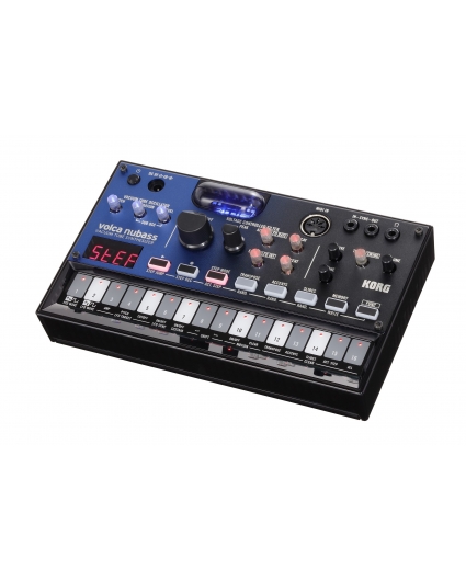 MODULO SINTETIZADOR El volca nubass es el primer sintetizador analógico equipado con una válvula Nutube de nueva generación en su oscilador. Válvula de vacío más analógico se traduce en un sonido cálido, grueso y rico. El familiar filtro escalado ofrece el carácter de las máquinas de bajos clásicas, junto al overdrive y a la enorme distorsión. Secuenciador volca de 16 pasos, función Chain para encadenar patrones, grabación de Motion Sequences, Active Step, funciones Acento, Slide y Transpose con opción Randomize para cada función. Altavoz incorporado. Alimentación a pilas o mediante adaptador KA350 opciones.