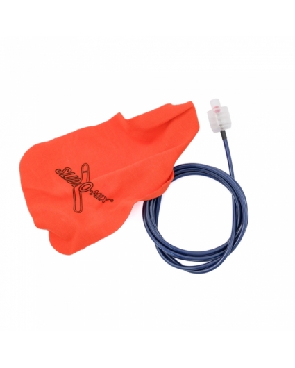 Guia de limpieza para vara de trombón. Paño limpiador en un extremo y cepillo en otro.